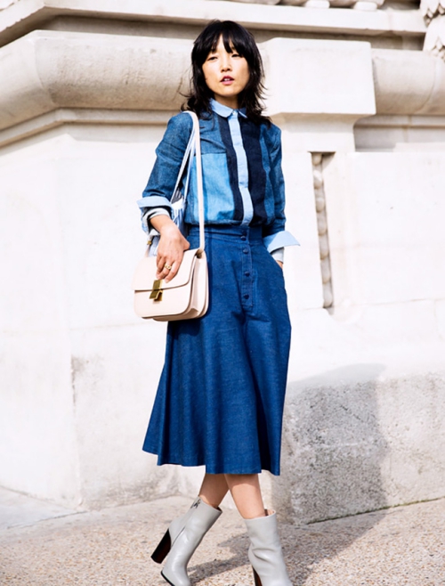 #8 เสื้อเชิ้ตเดนิมดีเทลเก๋กับกระโปรงปลายทิ้ง และรองเท้าบูท น่ารักสุดๆ