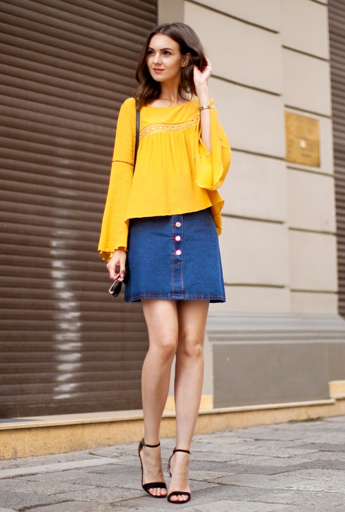#10 ลุคสุดชิลในวันหยุด เสื้อเชิ้ตกับเดนิมสเกิร์ต และผมยุ่งนิดๆ เซ็กซี่อยู่นะ