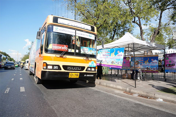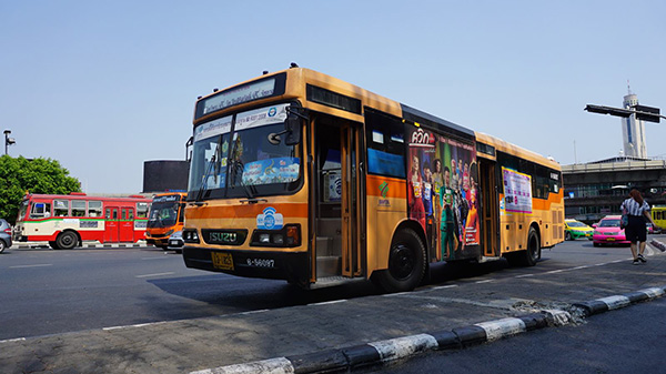 เดินทางโดยรถโดยสารปรับอากาศ ขสมก. โดยรถจะเริ่มให้บริการตั้งแต่ เวลา 08.30-16.30 น. (ควรร่วมกิจกรรมตั้งแต่เช้า เพื่อที่จะได้เข้าวัดครบทั้ง 9 วัด) รถมาทุก ๆ 30 นาที และเที่ยวสุดท้ายออกจากสนามหลวงเวลา 16.00 น. ให้บริการฟรี !! ไม่เสียค่าใช้จ่ายใด ๆ ทั้งนี้คลิกอ่านข้อมูลเพิ่มเติมที่นี่ www.dra.go.th