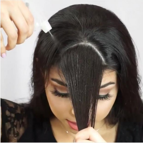 ขั้นตอนแรกก็แบ่งผมหน้าของเรา แล้วฉีดน้ำให้เปียกค่ะ