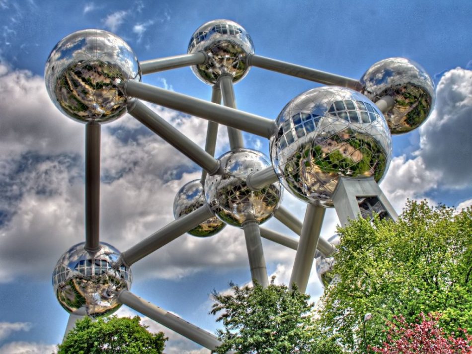 Atomium (อะโตเมียม) สถาปัตยกรรมลูกเหล็กทรงกลม ซึ่งเป็นสัญลักษณ์รูปโครงสร้างอะตอมที่ขยายขนาดใหญ่หลายล้านเท่า ที่ถูกสร้างขึ้นเป็นหอแสดงนิทรรศการงาน Expo ในปีค.ศ. 1958 มีความสูงราว 108 เมตร ประกอบด้วยลูกบอลเหล็ก 9 ลูก น้ำหนัก 2,400 ตัน โดยเชื่อมต่อลูกเหล็กแต่ละลูกด้วยท่อเหล็กขนาดใหญ่ ลูกบอลแต่ละลูกมีเส้นผ่านศูนย์กลาง 18 เมตร ภายในทางเดินเป็นบันไดเลื่อนที่มีความทันสมัย มีจุดชมวิว ห้องอาหาร และห้องแสดงงานศิลปะหมุนเวียน