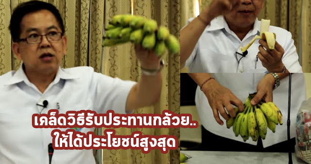 นายแพทย์ ดร.พรเทพ ศิริวัฒนารังสรรค์ ท่านเป็นอธิบดีกรมอนามัย ได้แนะนำวิธีรับปรทานกล้วยให้ได้ประโยชน์สูงสุด คือได้คุณค่าทางอาหารหลายประการเท่าที่กล้วยพึงจะให้ได้แก่ร่างกาย การรับประทานกล้วยโดยปรกติที่คนเราประพฤติปฏิบัติกันในชีวิตประจำวันส่วนใหญ่เราจะได้น้ำตาลจากกล้วยเป็นสำคัญ แต่คุณค่าทางอาหารอื่น ๆที่กล้วยมีเราจะไม่ได้รับ อันเนื่องจากความไม่รู้ วิธีการรับประทานที่ถูกต้อง
