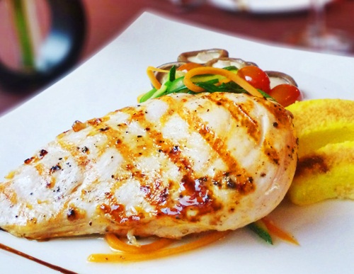 เลือกเนื้อไก่บริเวณอกไก่ที่มีไขมันน้อย ถึงว่าอาจจะแข็งไปนิดนะ