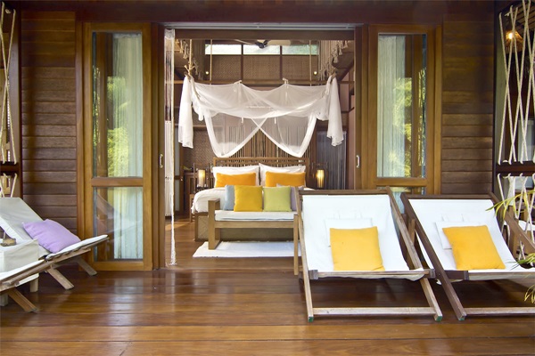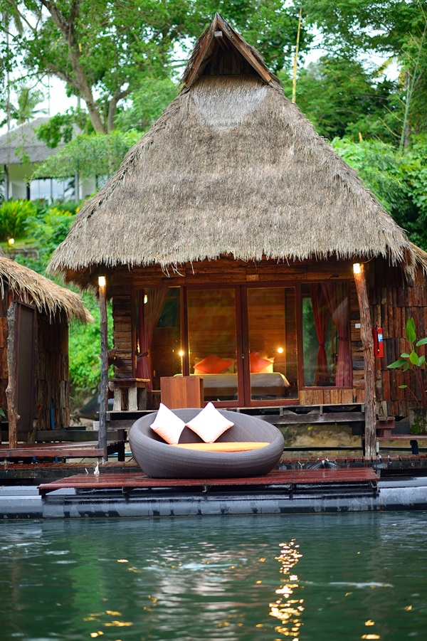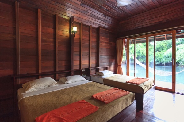 และมีสายน้ำไหลทอดผ่านตัวรีสอร์ท ในทุกของห้องพักมีระเบียงเปลไกว