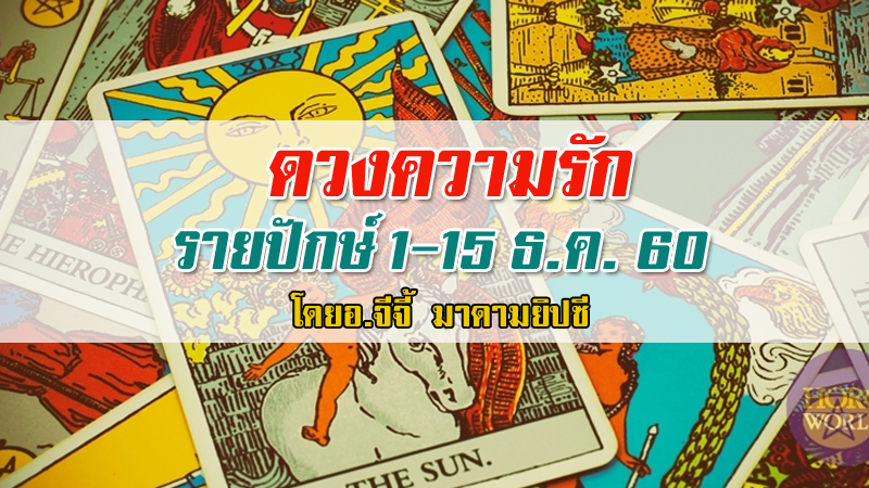 สวัสดีคะ…วันนี้ MarketJJ จะพาทุกท่านมาเช็คดวงความรักในปักษ์ของวันที่ 1- 15 ธ.ค. 60 กันคะ ซึ่งเราได้นำเอาพยากรณ์จาก แม่หมอจีจี้ มาดามยิปซี แห่งเว็บ Horoworld ที่ออกมาเผยเอาไว้ทั้งด้านการเงิน การงาน และความรัก แต่คราวนี้เราขอคัดมาเน้นๆเฉพาะด้านความรักเท่านั้นคะ ลองไปเช็คกันดูดีกว่าว่าความรักของคุณในปักษ์นี้มีทิศทางเป็นเช่นไร