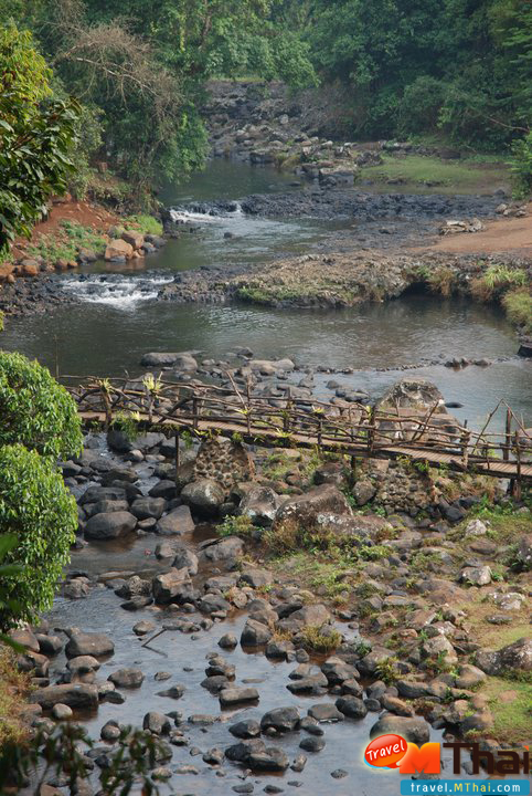 ถัดจากบ้านพักไปมีหมู่บ้านชาวเขา 13 ชนเผ่า คอยต้อนรับนักท่องเที่ยวผู้มาเยือน เดิมทีพื้นที่แห่งนี้เป็นป่าสภาพเสื่อมโทรม ถูกตัดไม้ทำลายไปมาก สภาพน้ำตกตอนนั้นมีแต่ขยะ กลางปี 1996 ?คุณวิมล กิจบำรุง? นักธุรกิจคนไทยได้สิทธิเข้าไปพัฒนาธุรกิจท่องเที่ยวในลาว ใช้เวลาออกแบบการก่อสร้างกว่า 2 ปี จึงได้รับอนุญาตให้เริ่มก่อสร้างปี 1999 ใช้แรงงานท้องถิ่น ปัจจุบันพนักงานในรีสอร์ตทั้งหมดเป็นชาวเผ่าแถบนี้ ตามเจตนารมณ์ที่คุณวิมลตั้งใจจะคืนชีวิตของป่า น้ำตก และผู้คนที่อาศัยอยู่ในพื้นที่แห่งนี้ได้มีชีวิตความเป็นอยู่ที่ดี