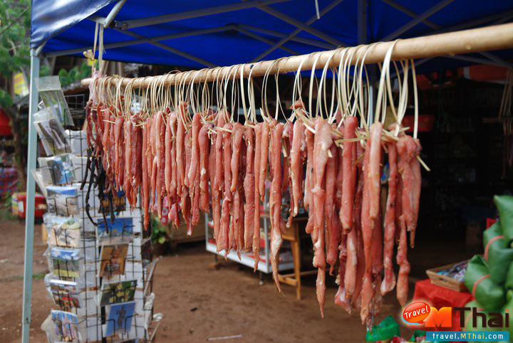 รสชาติคล้ายเนื้อหมูแดดเดียวแต่เนื้อ ไม่เหนียว ราคาแพงใช่เล่น ท่านที่ต้องการจะลิ้มรสเนื้อกวางและเก้งมาชิมได้ที่น้ำตกตาดเยื้องแห่งเดียว ตอนแรกจะชื้อกลับเมืองไทย แต่ไกด์ชาวลาวของเราเตือนว่า อาจจะไม่ผ่านด่านไทย ถือว่าเป็นสัตว์ป่าสงวน ผิดกฎหมาย ห้ามนำสัตว์ป่าเข้าประเทศ งานนี้เลยอดชื้อกลับไปฝากคนที่รู้จักในเมืองไทยเลย