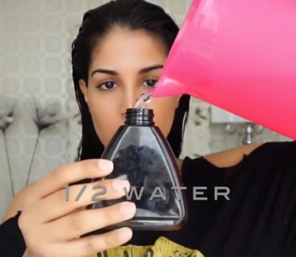 1. ผสมน้ำและน้ำยาบ้วนปากเข้าด้วยอัตรา 1:1 อย่างละครึ่งขวดค่ะ