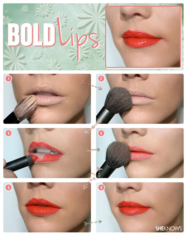 4.ตบด้วยแป้งฝุ่นให้ทั่วปากอีกครั้งหนึ่ง เพื่อให้สีลิปสติกติดทนนานตลอดทั้งวัน