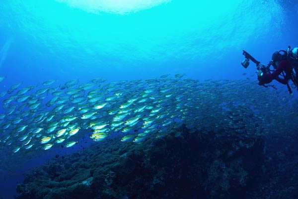 มีปลาหลากหลายสายพันธุ์ผลัดเปลี่ยนหมุนเวียนมาว่ายน้ำข้าง ๆ