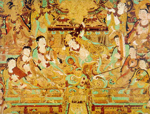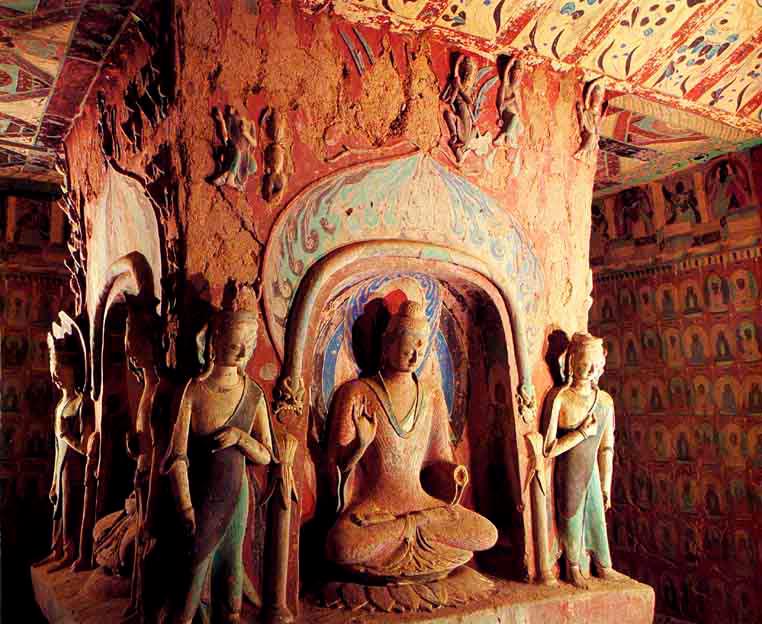 ระหว่างคริสต์ศตวรรษที่ 5 ตุนหวง เป็นศูนย์กลางสำคัญบนเส้นทางไหม (Silk Road) เป็นทางผ่านและจุดแวะพักของขบวนคาราวานพ่อค้า และถนนไหมเป็นเส้นทางแห่งการเผยแพร่พุทธศาสนา จากอินเดียเข้ามายังประเทศจีน ตุนหวง จึงกลายเป็นศูนย์รวมเศรษฐกิจ และวัฒนธรรมหลายชนชาติ โดยเฉพาะจีน อินเดีย กรีก และอาหรับ หลอมรวมและช่วยกันสร้างวัดในถ้ำ ไว้เป็นที่สักการะบูชาพระพุทธเจ้า โดยปรากฏหลักฐานโบราณคดีอันล้ำค่ามีสภาพสมบูรณ์ในถ้ำแห่งนี้