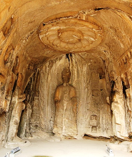 พระพุทฑรูปในสมัยราชวงศ์สุยและถัง มีขนาดใหญ่จำนวน 7-9 องค์ ภายในถ้ำเดียวกัน มีพระพุทธไสยาสน์ปางนิพพานขนาดหน้าตัก 16 เมตร ประดิษฐานในถ้ำหมายเลข 148-158 และพระพุทธรูปขนาดหน้าตัก 34.5 เมตร ในถ้ำหมายเลข 96 ซึ่งด้านหน้าเป็นหอคอย 9 ชั้น ส่วนภาพวาดผนังถ้ำบรรยายเป็นเรื่องราวพระพุทธประวัติเป็นส่วนมาก ผนังถ้ำเป็นหินทรายชำรุดเสียหายง่าย จึงใช้ดินเหนียวปั้นรูปประติมากรรมระบายหลากสี นับเป็นเทคนิคพิเศษของชาวจีนสมัยก่อนราชวงศ์ถัง ที่ไม่ค่อยพบเห็นในท้องถิ่นอื่นๆ ถือกันว่าวิจิตรล้ำค่าหาดูได้ยาก