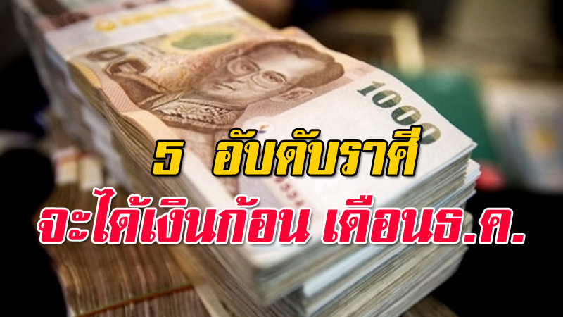 เปิดคำทำนายดวงการเงินประจำเดือน ธันวาคม 2560 โดยคำทำนายได้มีการจัดอันดับเอาไว้แล้ว ว่าคนที่เกิดทั้ง 5 ราศีในเดือนธันวาคมนี้มีเกณฑ์จะได้รับเงินก้อน ไม่ว่าจะเป็นจากการเสี่ยงโชค หรือการลงทุนธุรกิจที่ได้ผลกำไรอย่างงอกงาม จะมีราศีไหนกันบ้างแล้วจะตรงกับราศีเกิดของคุณหรือไม่ ตามไปลุ้นกันเลยค่ะ