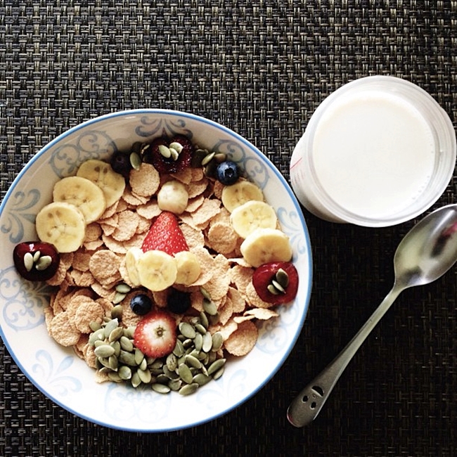 เชอร์รี่ และกล้วยหอม ราดด้วยนมถั่วเหลือง เพิ่มพลังงานในยามเช้า