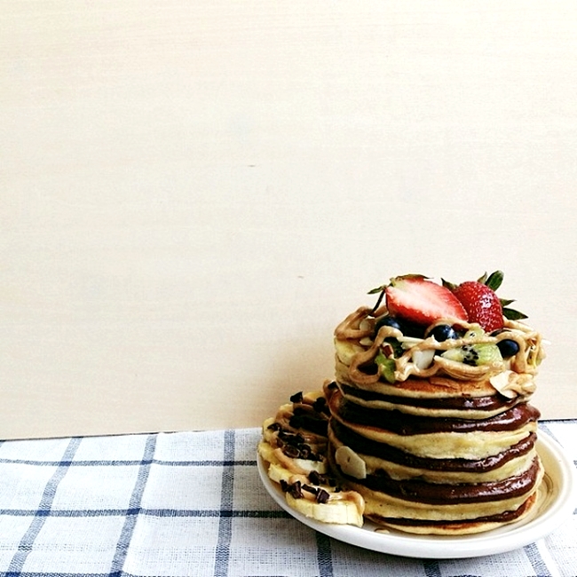16. แพนเค้กเนยถั่ว มาพ้รอมผลไม้หลากหลาย