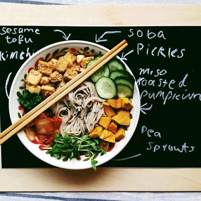 9. โซบะอบเต้าเจี้ยว ใส่กิมจิ เต้าหู้ แตงกวา และฟักทอง ผสมผสานวัตถุดิบ ออกมาลงตัว ดูไม่ธรรมดาเลยทีเดียว