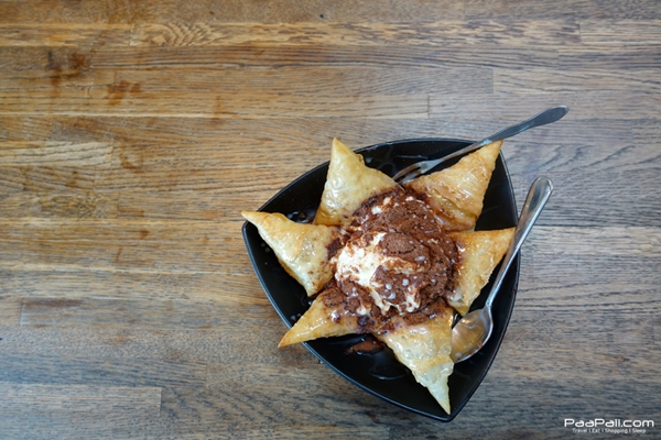 ปิดท้ายด้วยของหวานน่ากินอย่าง ?โรตีกรอบภูเขาไฟ? มาทานกันครับ จานนี้ราคา