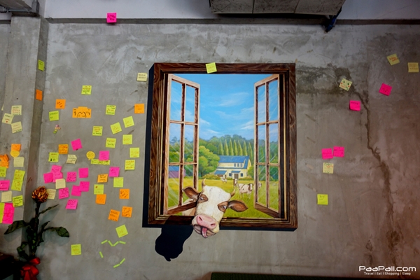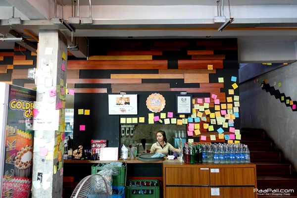 ระหว่างทางขึ้นชั้นบน ร้านเค้ามี Post-it ให้ลูกค้าได้เขียนกันด้วย