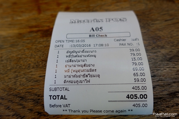 มาถึงเวลาของการคิดค่าเสียหายมื้อนี้ สำหรับมื้อนี้ค่าเสียหาย 405 บาทไม่คิดค่าบริการเพิ่มครับ