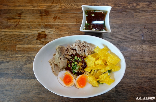 เมื่อเอามาคลุกเคล้ากับเนื้อหมูและเส้นมาม่าแล้วรู้สึกว่ามันไปด้วยกันได้ดี บอกเลยว่าอร่อยสุด ๆ จนไม่อยากหยุดแค่ชามเดียว