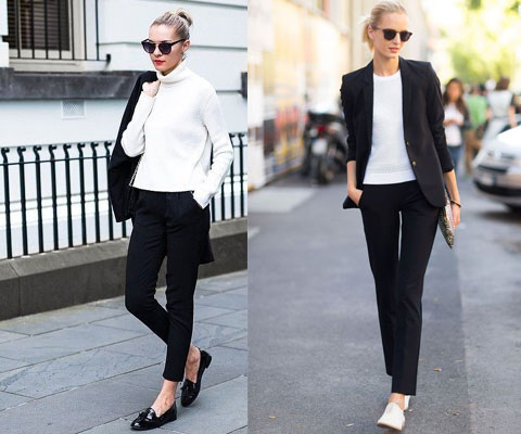 เริ่มกันที่ลุดสบายๆกันเลยก็แล้วกันเนอะ จะใส่เป็นขาวดำ หรือ ดำทั้งชุดเลยก็ได้แล้วแต่ความชอบเลยนะคะ ถ้าสาวๆที่ยังไม่ชินกับการต้องมาแต่งคุมโทนแบบนี้กลัวว่าจะดุหม่นหมอง ก็พยายามเลือกแบบ ทรงเสื้อ กางเกง หรือหาแอคเซคเซอร์รี่มาเพิ่ม เพื่อเบรคความเข้มของลุคได้นะคะ  อย่างเช่ หมวก หรือสร้อย ต่างๆ จ๊ะ