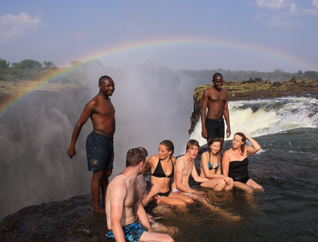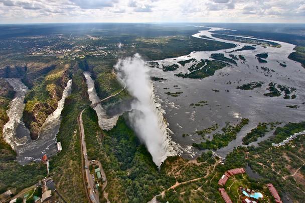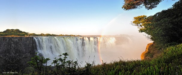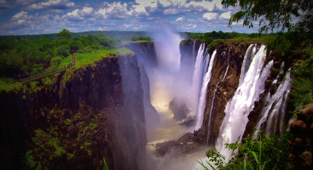 น้ำตกวิกตอเรีย เกิดจากแม่น้ำแซมเบซี ไหลลงหน้าผาสูง 108 ม. กว้าง 1,700 ม. ระหว่างประเทศ แซมเบีย กับ ประเทศซิมบับเว ทำให้เป็นน้ำตกที่มีหน้ากว้างที่สุดในโลก องค์การยูเนสโกได้ขึ้นทะเบียนให้ น้ำตกวิคตอเรียเป็นมรดกโลกทางธรรมชาติร่วมกันของ แซมเบีย และซิมบับเว ในปี พ.ศ. 2532
