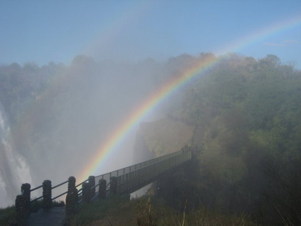 จากนั้นก็จะไหลผ่านที่ราบ ผ่านทางรถไฟ เชื่อมต่อระหว่างซิมบับเวกับ แซมเบีย และบริเวณสะพานแห่งนี้เองก็จะเป็นที่ที่ใช้สำหรับโดดบันจี้จัมพ์ของผู้ที่รักความสะใจ เพราะที่นี่นับเป็นจุดโดดที่สูงที่สุดในโลก น้ำตก วิกตอเรีย แห่งนี้ไม่เคยเหือดแห้ง สามารถผลิตน้ำได้ถึงห้าล้านคิวบิคเมตรต่อนาที ในช่วงหน้าฝน ช่วงที่คนมาเที่ยวมากที่สุด ก็คือระหว่างเดือนสิงหาคมถึงพฤศจิกายน เพราะทิวทัศน์จะสวยงาม มีละอองน้ำไม่มาก