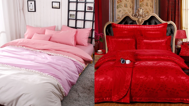 สีชมพูอ่อน , สีแดง ช่วยเสริมในเรื่องของความรักมากที่สุด หากผ้าปูที่นอนเป็นสีอื่น ก็ให้เลือกใช้หมอนสีแดงตั้งไว้ที่เตียง เพื่อเพิ่มความอบอุ่น สมบูรณ์แบบ หรือโคมไฟเล็กๆ สีแดง หรือสิ่งของอะไรก็ได้ที่เป็นสีแดงเอาวางไว้ตามมุมใดมุมหนึ่งของห้อง จะทำให้รู้สึกถึงพลังงานความรัก เพราะสีแดงสื่อถึงหัวใจ เป็นสีที่เซ็กซี่ หรือสีเลือดนกก็ได้