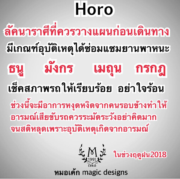 อุบัติเหตุมากมาพร้อมกับหน้าฝนเสมอ สิ่งสำคัญที่จะทำให้อยู่รอดปลอดภัยคือการมีสติ และไม่ประมาท ดูแลตัวเองอยู่เสมอ วันนี้ MarketJJ มีดวงรับหน้าฝนจาก หมอเค้ก Magic designs มาฝากค่ะ รู้ก่อนจะได้หาทางป้องได้ก่อนนะคะกับ ราศีควรวางแผนก่อนเดินทาง มีเกณฑ์เกิดอุบัติเหตุได้แก่….