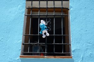 ทว่าในช่วงฤดูใบไม้ผลิ ปี 2011 เมืองยุซคาร์ ก็ได้เปลี่ยนจากเมืองสีขาวมาเป็นเมืองสีฟ้าเพื่อเฉลิมฉลองรอบปฐมทัศน์ของภาพยนตร์ เรื่อง เดอะ สเมิร์…