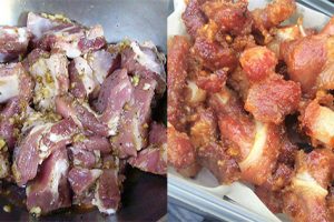 ส่วนผสมและสัดส่วน 1. ซี่โครงหมู (ถ้าเป็นซี่โครงหมูอ่อนจะดีมาก) 400 กรัม 2. ข้าวสวยสุก 3 ช้อนโต๊ะ 3. กระเทียมสับ 1 หัว 4. เกลือ 2 ช้อนชา วิ…