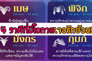 เชื่อว่าคำทำนายนี้! ต้องทำให้สาวที่มีคู่ทั้งหลายเลือดขึ้นหน้าแน่ๆ เพราะวันนี้ MarketJJ มีข่าวมาเตือนว่า 4 ราศี ต้องเฝ้าแฟนให้ดีๆ เพราะช่วงน…