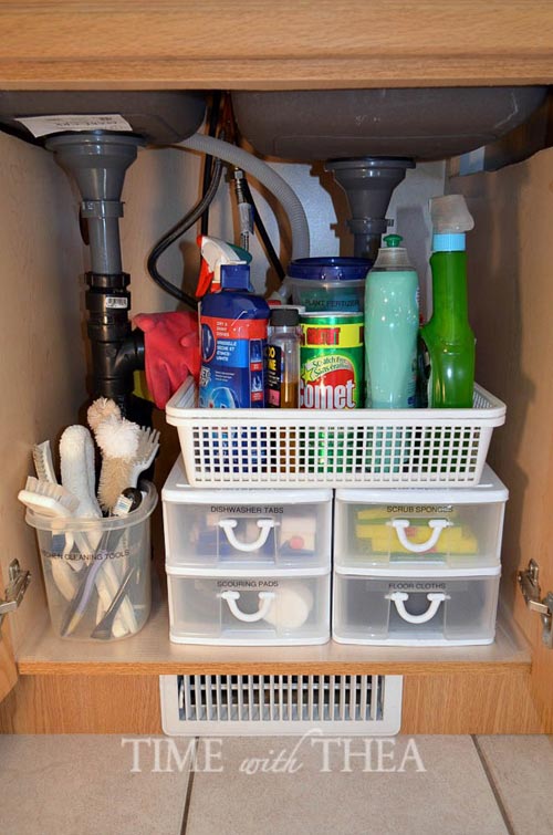วางทับด้วยตะกร้าที่ใส่ขวดน้ำยาเคมีให้เป็นระเบียบจะดีกว่า
