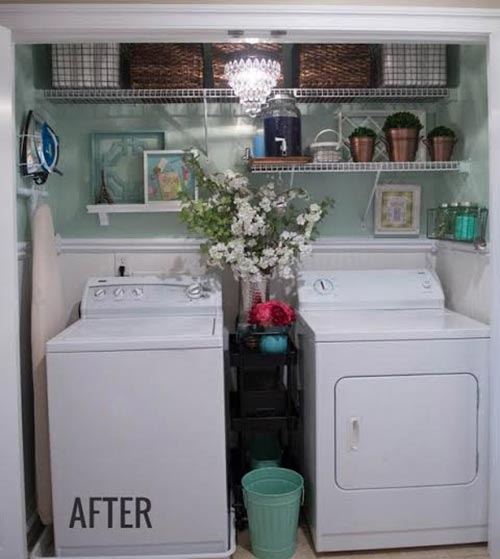 ฉะนั้นให้เริ่มจากการติดตั้งชั้นวางของแบบติดผนังไว้เหนือเครื่องซักผ้า