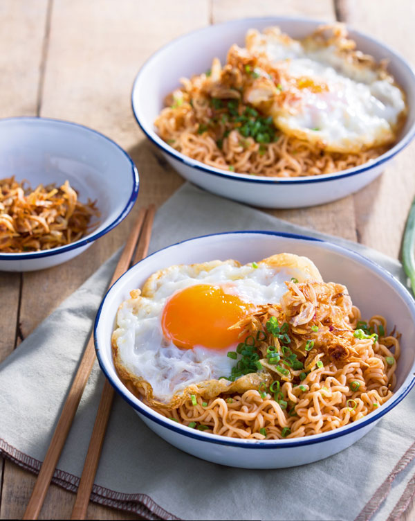 สิ้นเดือนแบบนี้คงไม่มีใครปฏิเสธอาหารคู่ชีพอย่างเมนูบะหมี่กึ่งสำเร็จรูปไปได้หรอกเนอะ แต่ครั้นจะให้ฉีกซอง เทน้ำร้อน ใส่เครื่องปรุง คน ๆ หน่อยแล้วอ้ำเข้าปากทุกมื้อคงไม่ไหว น่าจะดัดแปลงนิดหน่อยทำให้เจริญอาหารมากขึ้น เอาล่ะ? มาทางนี้เลยจ้า เราขอนำเสนอวิธีทำบะหมี่แห้งหอมเจียวสูตรจากนิตยสารแม่บ้าน สูตรนี้ทำง่ายเว่อร์ ! แค่ลวกบะหมี่กึ่งสำเร็จรูปให้พร้อม คลุกน้ำซอสหน่อย โปะไข่ดาวสักฟอง โรยต้นหอมหน่อย และที่ขาดไม่ได้เลยคือ หอมเจียว พระเอกของเรา ทั้งนี้ถ้าหากยังพอมีทรัพย์มากหน่อยก็เพิ่มหมูสับโรยหน้าลงไปกลายเป็นบะหมี่แห้งหมูสับ หรือจะใส่หมูแดงก็ได้เช่นกัน กลายเป็นบะหมี่แห้งหมูแดง ถ้าอยากกินแล้วลื่นคอก็จัดน้ำซุปสักถ้วย อูย? น้ำลายไหลเลยคุณพี่