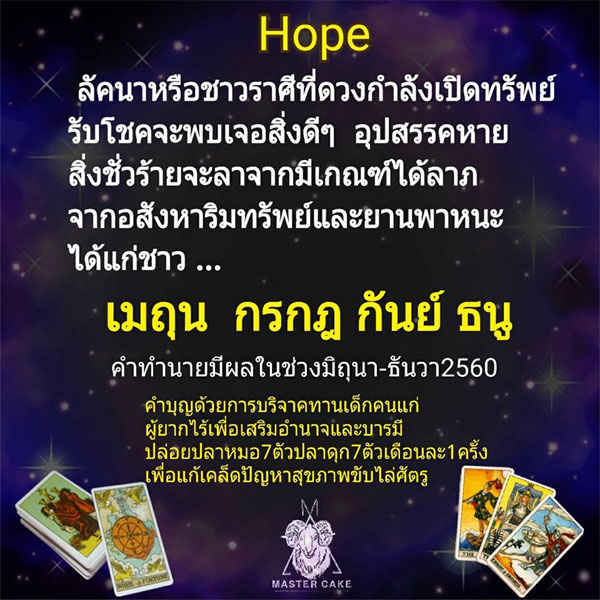 ย้ำกันอีกที! วันนี้ MarketJJ นำคำทำนายจาก หมอเค้ก Magic designs หมอดูชื่อดังในโลกออนไลน์ ที่ได้เคยออกมาพยากรณ์เอาไว้ตั้งแต่ช่วงกลางปี ว่า 4 ราศีต่อไปนี้ดวงงกำลังเปิดทรัพย์ รับโชคใหญ่ สิ่งชั่วร้ายกำลังจะหมดไป ให้หมั่นทำบุญเสริมอำนาจและบารมี ซึ่งคำทำนายมีผลตั้งแต่เดือน มิถุนายน – ธันวาคม 2560