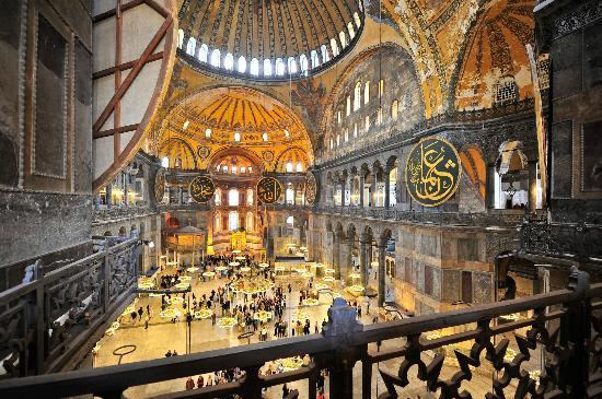 อิสตันบูล เดิมใช้ชื่อว่า คอนสแตนติโนเปิล ตั้งอยู่ในเขตเกิดเหตุการณ์แผ่นดินไหวบ่อยครั้ง และแม้การก่อสร้างโบสถ์จะคาดการณ์ไว้แล้ว แต่แผ่นดินไหวรุนแรงในช่วงหลัง ทำให้โบสถ์และโดมเสียหายหลายส่วน จำเป็นต้องทำการบูรณะใหม่ รวมทั้งสร้างกำแพงขนาดใหญ่เพื่อช่วยค้ำยันส่วนกำแพงที่รองรับฐานโดมอีกแรงหนึ่ง หลายปีต่อมา ปูนปลาสเตอร์ที่ชาวมุสลิมฉาบทับรูปภาพจารึกทางศาสนาคริสต์ไว้เริ่มกะเทาะออก เปิดเผยแก่สายตาชาวโลกเป็นครั้งแรกว่า แท้จริงแล้วสุเหร่าแห่งอิสตันบูลแห่งนี้ เดิมเป็นสถานที่ศักดิ์สิทธิ์ของคริสต์ศาสนา