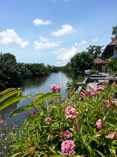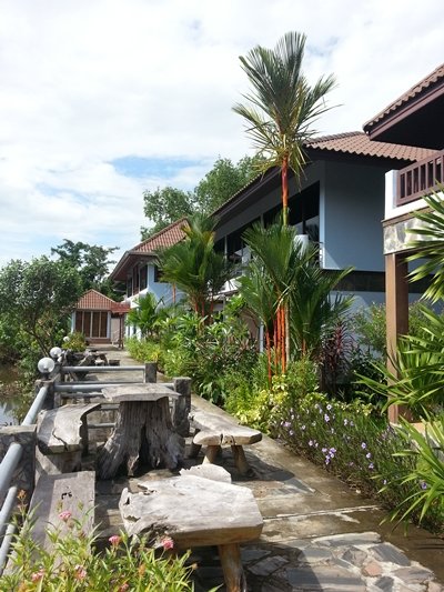 ความประทับใจแรกเมื่อทุกคนก้าวเข้ามาภายในอาณาจักรแห่งความเรียบง่าย นั่นก็คือ ความร่มรื่นของต้นไม้สีเขียวๆ นานาชนิด ซึ่งปลูกติดอยู่กับตัวอาคารไม้ด้านหน้า ลึกเข้าไปบริเวณริมคลองบางพระ มีเก้าอี้ไม้หลากหลายดีไซน์วางเรียงกันเป็นพื้นที่ส่วนกลาง ผู้มาเยือนสามารถใช้ร่วมกันได้อย่างไม่ขัดเขิน อาคารที่พักซึ่งตั้งขนาบไปกับลำน้ำดูสวยงามด้วยรูปลักษณ์แบบไทยประยุกต์ เก๋ไก๋ด้วยแผ่นไม้ลวดลายธรรมชาติ ทำให้รีสอร์ทแห่งนี้ดูน่ารัก เข้ากันได้ดีกับสภาพพื้นที่ริมคลอง