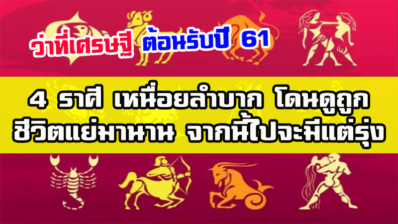 4 ราศี เหนื่อยลำบาก โดนดูถูก ชีวิตแย่มานาน จากนี้ไปจะมีแต่รุ่ง ว่าที่เศรษฐี ปี 61