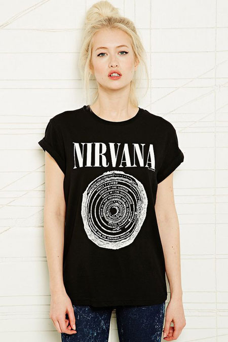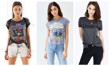ที่จุดเด่นก็คือจะเป็นเสื้อยืดธรรมดาๆนี่แหละค่ะคุณสาวๆ แต่ถูกลงลวดลายสกรีนลายชื่อวงร็อคต่างๆ หรือโลโก้ของวงดนตรีดังๆเอาไว้ที่เสื้อ ที่อาจจะเป็นวงร็อคดังๆ (หรือไม่ใช่ววงร็อคก็พอมีนะ)
