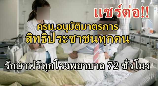 นพ.ปิยะสกล สกลสัตยาทร รัฐมนตรีว่าการกระทรวงสาธารณสุข กล่าวหลังการประชุมคณะรัฐมนตรี(ครม.) ว่า ที่ประชุม ครม.มีมติอนุมัติในหลักการของหลักเกณฑ์ วิธีการ และเงื่อนไขการกำหนดค่าใช้จ่ายในการดำเนินการส่งผู้ป่วยฉุกเฉินวิกฤต ซึ่งทำให้ผู้เจ็บป่วยฉุกเฉินสามารถเข้ารับการรักษาได้โรงพยาบาลทุกแห่งไม่ว่าจะเป็นของรัฐและเอกชน ภายใน 72 ชั่วโมง จากนั้นจึงจะสามารถส่งต่อไปยังโรงพยาบาลที่ประชาชนมีสิทธิ์รักษาพยาบาลอยู่