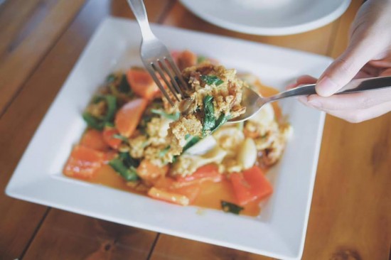 มาดูอาหารกันบ้าง จานนี้ คือ ปูนิ่มผัดผงกระหรี่