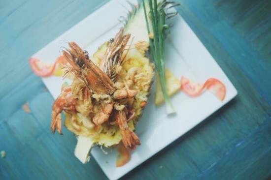 ข้าวอบสับปะรด กุ้งตัวใหญ่มาก อันนี้ราคาจำแน่นอนไม่ได้ ประมาณ 100 นิดๆ