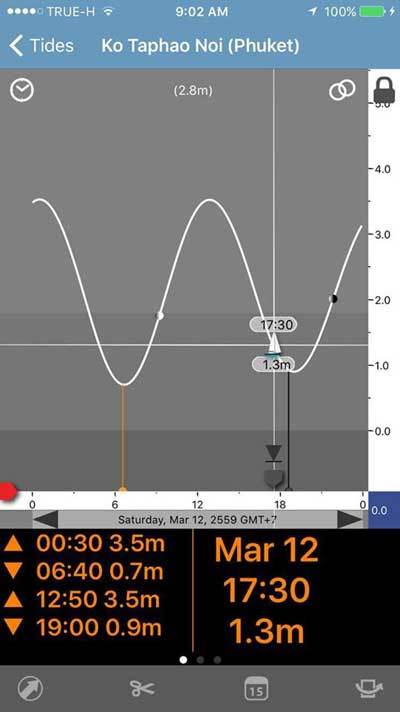 (วัดจาก Application : Tides Planner พิกัดที่เกาะตะเภาน้อย)