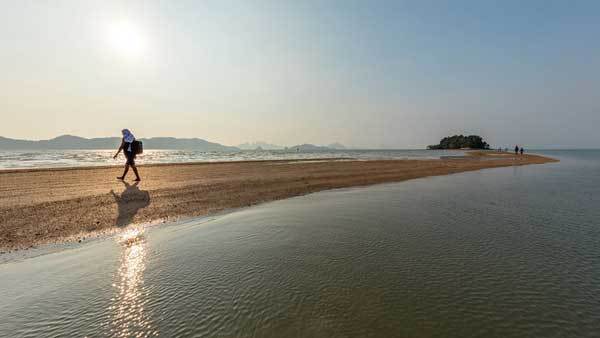 เดินจากจุดเริ่มต้นไปที่เกาะแล้วเดินกลับประมาณ 4 กม.
