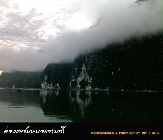 วันที่ 2 ของการเดินทาง ตื่นแต่เช้า( 6.00 น.) ลุงดำเจ้าเก่า มารับไปดูหมอกยามเช้า ว้าวววววว สวยจริงๆ หมอกเยอะมากๆ เป็นทางยาวเลย นั่งล่องแพไปอากาศเย็นๆยามเช้า กับสายหมอกที่สวยงาม ช่างโรแมนติกเหลือเกิน..อิอิ ระหว่างก็เห็นนกเงือก (ตัวใหญ่มาก) มันมากันเป็นฝูงเลย บินอยู่ยอดเขา มีอีเห็น (มันเหมือนลิงผสมชะนี มองไกลๆอะ)