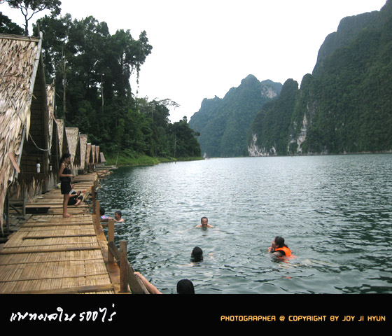 การเดินทางไป เขื่อนเชี่ยวหลาน โดยเรือใช้เวลาประมาณ 45-60 นาที (ขึ้นอยู่กับแวะถ่ายรูปเยอะป่าว) ก็ถึงที่จอดเรือ เพื่อเดินเท้าต่อไปประมาณ 1.5 กม.เพื่อจะไปแพทะเลใน 500ไร่ พอเดินถึงนั่งแพยนต์ไปอีกนิดนึงก็ถึง แพ500ไร่ โอ้วว!! มันสวยมาก เป็นแพบ้านๆ หันหน้าให้กับทิวเขาเลยอะ แถมมีหมอกพาดผ่าน อย่างสวยงาม ธรรมชาตินี่ช่างสร้างจริงๆ