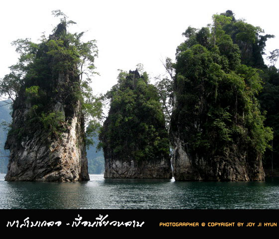 ระหว่างนั่งเรือไป เขื่อนเชี่ยวหลาน มีเขามากมาย (กุ้ยหลินเมืองไทยจริงๆ) ทำให้เราตื่นตาตื่นใจ อดไม่ได้ที่จะแชะรูป มาเพียบ ที่เราชอบจะเป็น”เขาสามเกลอ” มันสวยจริงๆ ที่สำคัญที่นี่น้ำใสมากๆ สีเขียวเลย