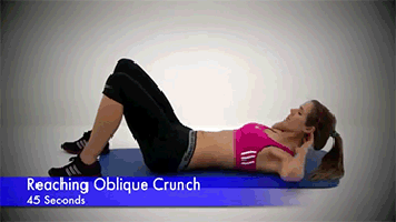 จากท่า Crunch แบบเดิมที่ยกตัวขึ้นตรงๆ ลองเปลี่ยนมาเป็นยื่นแขนออกข้างไปคว้าหุ่นดีๆ แบบในภาพนี้ดูสิคะ จะช่วยให้บริหารกล้ามเนื้อด้านข้างไปพร้อมกันได้ค่ะ
