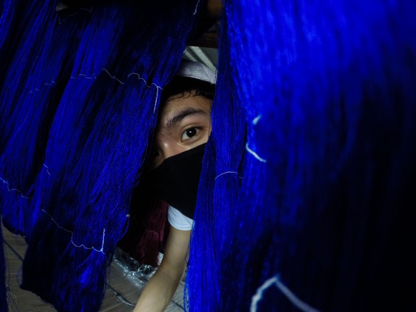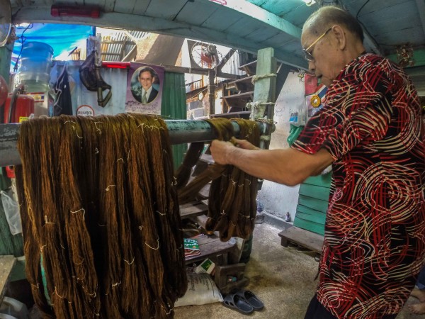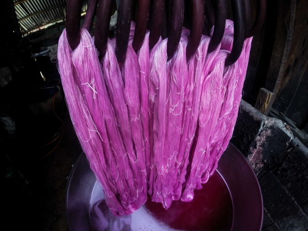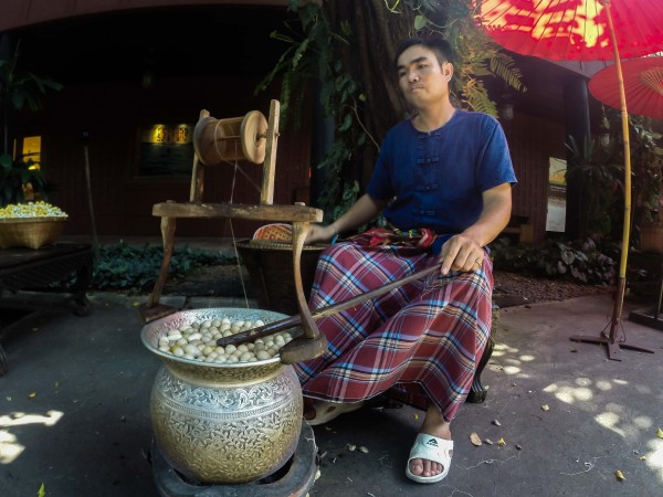 คุณลุงกำลังย้อมไหมอยู่ครับ